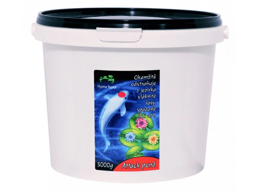 Az Attack Pond termék nagyon gyorsan eltávolítja a rostos algákat, az elhalt leveleket és a tó alján található egyéb szilárd szennyeződéseket.