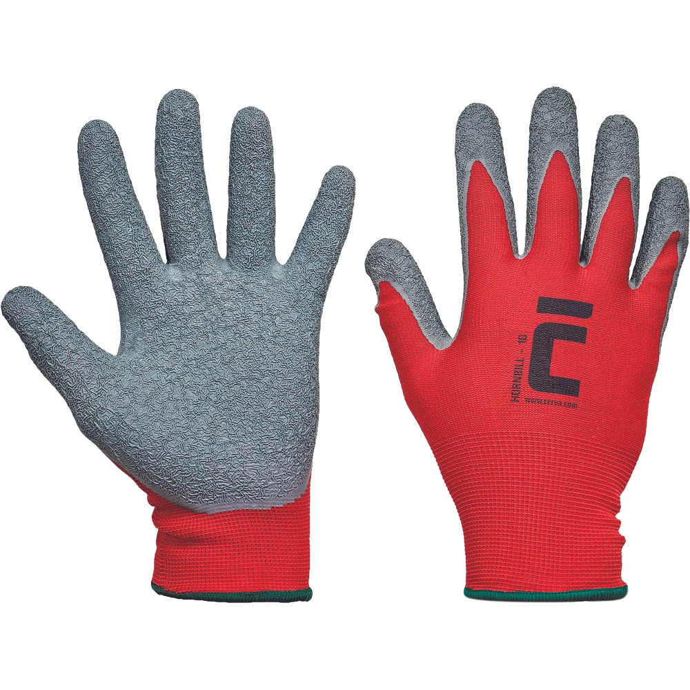 Cerva HORNBILL szürke gumibevonatú, piros munkavédelmi kesztyű.
