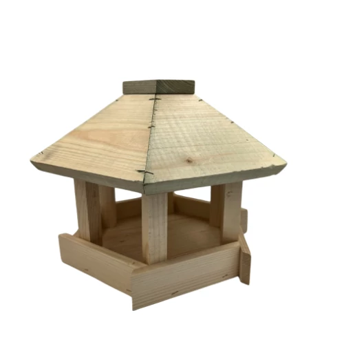 Madáretető hatszögletű, fa, festett, 26*26*25 cm