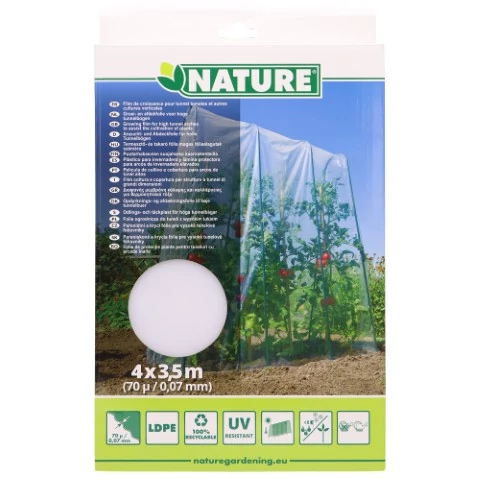 A Nature átlátszó növénytermesztő fólia (LDPE) kifejezetten paradicsom és más futónövények – például uborka, bab vagy borsó – termesztéséhez lett kialakítva. A fólia ideális választás fóliasátrakhoz vagy alagutakhoz, ahol védi a növényeket és optimális növekedési környezetet biztosít.